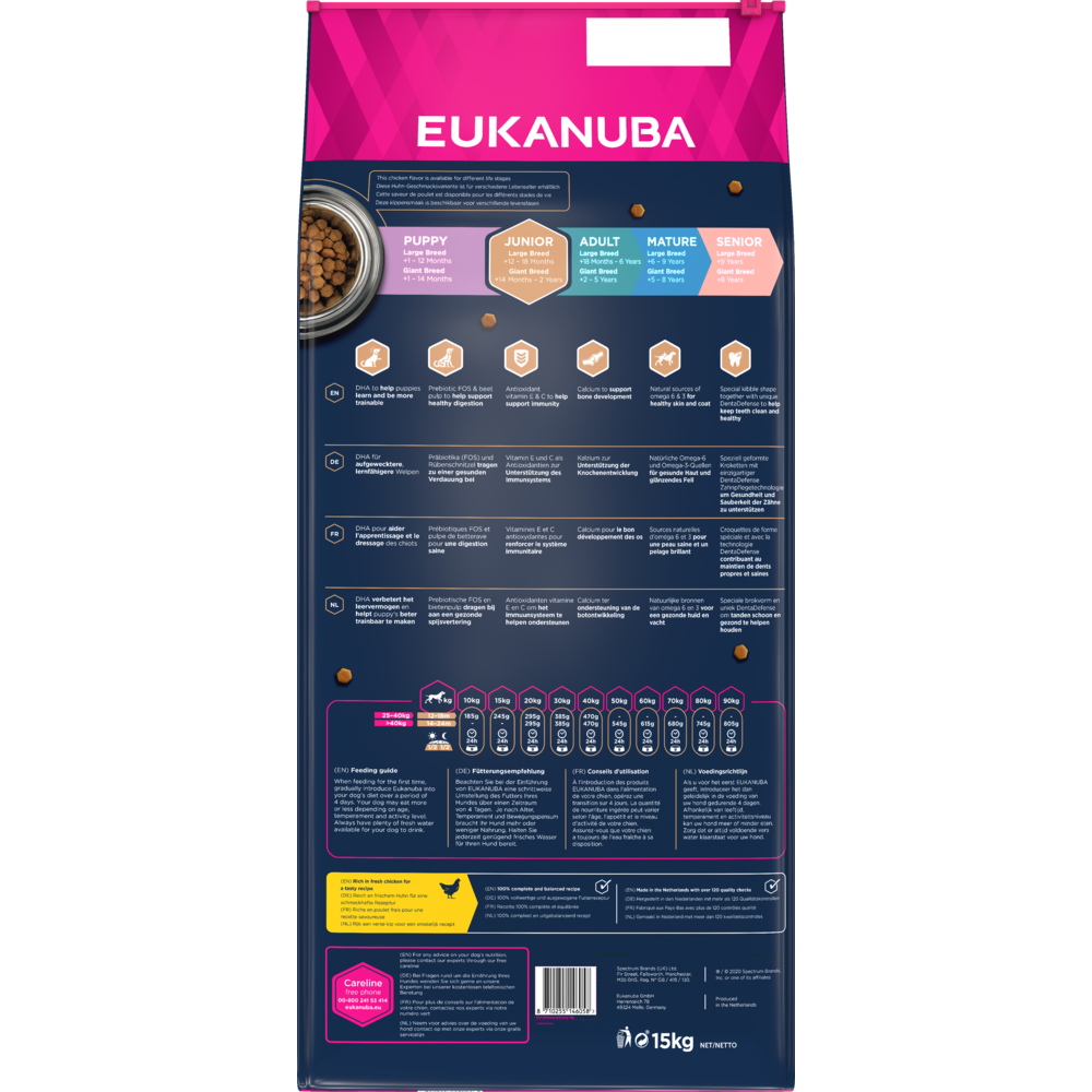 EUKANUBA Trockenfutter-Kroketten sind reich an frischem Huhn und eignen sich perfekt für Junghunde großer Rassen im Alter von 12 bis 18 Monaten (oder sehr großer Rassen im Alter von 14 Monaten bis 2 Jahren). Mit speziell ausgewählten Zutaten unterstützt das Futter Wachstum und Entwicklung Ihres Junghundes. EUKANUBA Junior Trockenfutter für Hunde großer Rassen enthält DHA für aufgewecktere, lernfähigere Welpen und Junghunde.